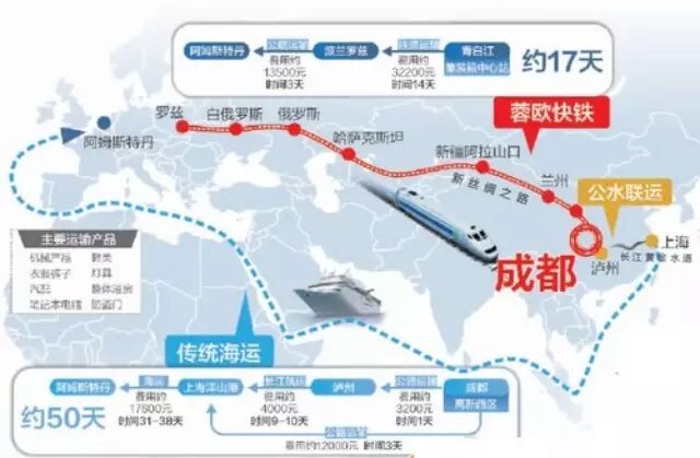 蓉欧快铁为成都乃至中国西部地区通往欧洲大地架起了陆上货运大通道,为成都建设面向欧洲市场的出口生产基地和欧洲产品贸易集散中心提供了物流平台支撑,将从根本上打破西部地区发展外向型经济必须依赖港口的老路,变西部内陆地理劣势为出口欧洲前沿主阵地优势。