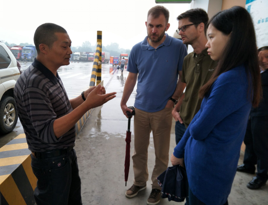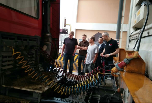 受奔驰汽车公司的研发工程师请求,我们在停车场大门口随意邀请了几位正准备出行的货车驾驶员,工程师与他们进行了亲切交流。对大型货车的操作和整车质量要求等诸多问题进行了详细询问,尤其是工程师们最关心的问题。驾驶员凭着自己多年的货车驾驶经验,谈到了自己对车辆驾驶过程中的心得体会,以及驾驶过程中对机械的哪些方面最关注等提出了一些想法,还向工程师们讨教了平时驾驶过程中遇到的机械疑难问题,对车子的日常维护保养,如何提高发动机的使用寿命等多方面问题进行探讨。交谈结束后,还向驾驶员赠送了礼品,并做合影留念。