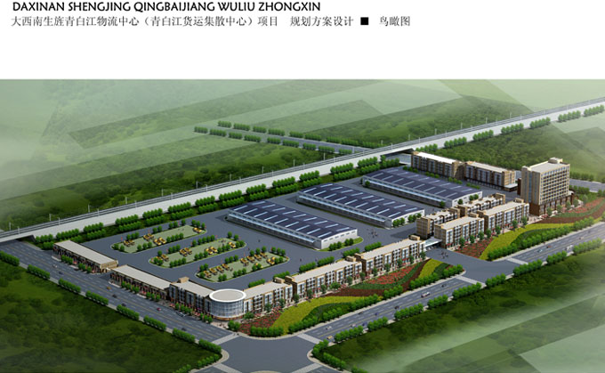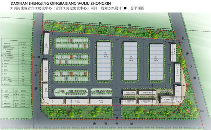 规划净用地185亩,容积率0.7,规划总面积9.3万平方米,其中,商业及办公建筑面积2.6万平方米,商务酒店建筑面积1.9万平方米,仓储零担区3.0万平方米,信息交易区建筑面积1.7万平方米。建筑密度为28.7%,绿化率17.0%。